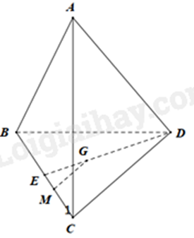 Gọi E là trung điểm của BC. Vì G là trọng tâm của tam giác BCD nên \(\frac{{GD}}{{ED}} = \frac{2}{3}\)