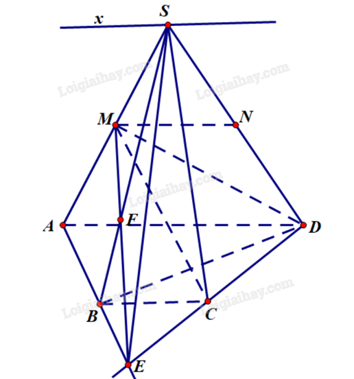 Mặt khác \(\left\{ \begin{array}{l}E \in AB \subset (SAB)\\E \in CD \subset (SCD)\end{array} \right.\) suy ra \(E \in (SAB) \cap (SCD)\).