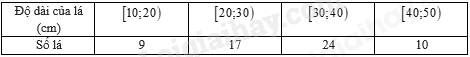 Độ dài của 60 lá dương xỉ trưởng thành được cho bằng mẫu số liệu ghép nhóm sau: