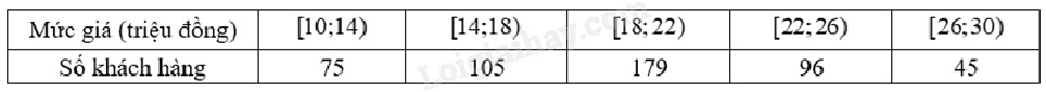 Ta có \(\bar x = \frac{{15.1 + 55.3 + 190.5 + 290.7 + 140.9}}{{15 + 55 + 190 + 290 + 140}} = 6,4\).