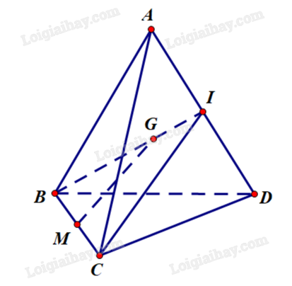 Vì \(\left\{ \begin{array}{l}I \in BG \subset (BMG)\\I \in AD \subset (ACD)\end{array} \right.\) nên \(I \in (BGM) \cap (ACD)\).