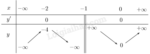 Ta có \(y' = \frac{{{x^2} + 2x}}{{{{\left( {x + 1} \right)}^2}}} \Rightarrow y' = 0 \Leftrightarrow \frac{{{x^2} + 2x}}{{{{\left( {x + 1} \right)}^2}}} = 0 \Leftrightarrow x = - 2\) hoặc \(x = 0\).