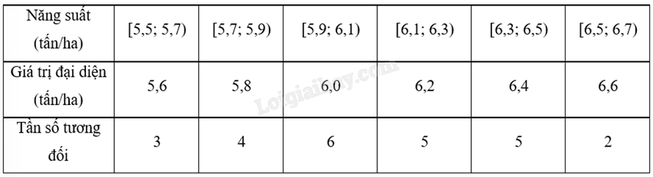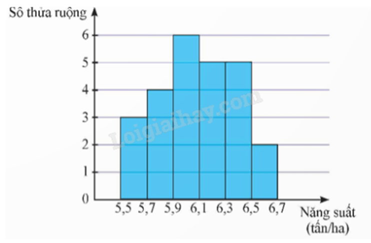 Kết quả khảo sát năng suất (đơn vị: tấn/ha) của một số thửa ruộng được minh họa ở biểu đồ sau: