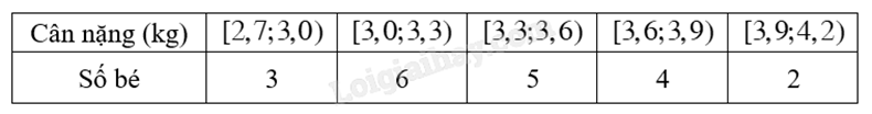 Một bệnh viện thống kê lại số cân nặng của 20 bé sơ sinh trong bảng sau: