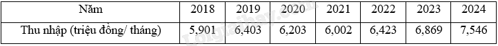 Bảng thống kê dưới đây cho biết thu nhập bình quân đầu người/tháng của người dân Hà Nội (tính theo triệu đồng) trong giai đoạn từ năm 2018 đến năm 2024: