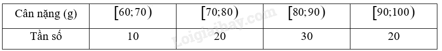 b) Khoảng biến thiên của mẫu số liệu ghép nhóm đó là: \(R = 100 - 60 = 40\) (g).