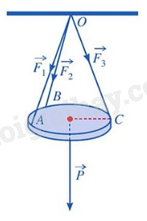 Gọi T là trọng lượng của đèn tròn thì $T = \left| {\overset{\rightarrow}{OA} + \overset{\rightarrow}{OB} + \overset{\rightarrow}{OC}} \right| = \left| {3\overset{\rightarrow}{OG}} \right| = 3OG$.