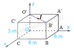 Vì O'A'B'C' là hình chữ nhật nên $\overset{\rightarrow}{O^{\prime}I} = \overset{\rightarrow}{IB^{\prime}}$.