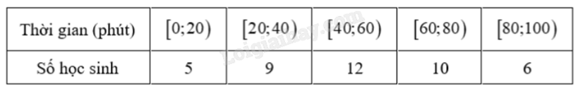 Khảo sát thời gian chơi thể thao trong một ngày của 42 học sinh được cho trong bảng sau (thời gian đơn vị phút):
