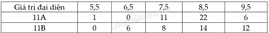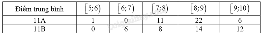 Thầy giáo thống kê lại điểm trung bình cuối năm của các học sinh lớp 11A và 11B ở bảng sau: