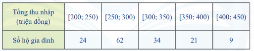 Gọi \({x_1};{\rm{ }}{x_2}; \ldots ;{\rm{ }}{x_{150}}\) là mẫu số liệu gốc gồm thu nhập của 150 hộ gia đình được xếp theo thứ tự không giảm.