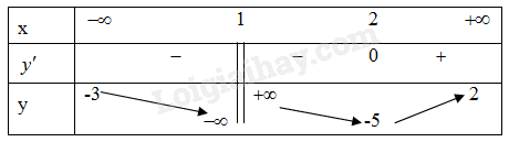 Hàm số nghịch biến trên mỗi khoảng \(\left( { - \infty ;2} \right)\), \(\left( {2; + \infty } \right)\).