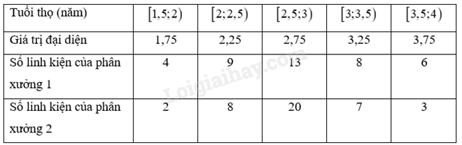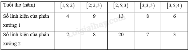 Tuổi thọ của một số linh kiện điện tử (đơn vị: năm) được sản xuất bởi hai phân xưởng được cho như sau: