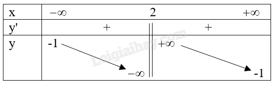 Đạo hàm: \(y' = \frac{{ - 1}}{{{{( - x + 2)}^2}}} > 0\), với mọi \(x \ne 2\).