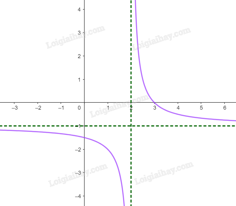 Ta vẽ được đồ thị \(y = \frac{{x - 3}}{{ - x + 2}}\) như hình: