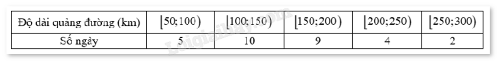 Một bác tài xế thống kê lại độ dài quãng đường (đơn vị: km) bác đã lái xe mỗi ngày trong một tháng ở bảng sau:
