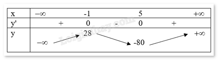b) Hàm số đồng biến trên khoảng \(( - \infty ; - 1) \cap (5; + \infty )\).