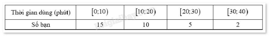 Thống kê thời gian dùng Facebook một ngày của các bạn trong lớp 12C được kết quả ghép nhóm như sau: