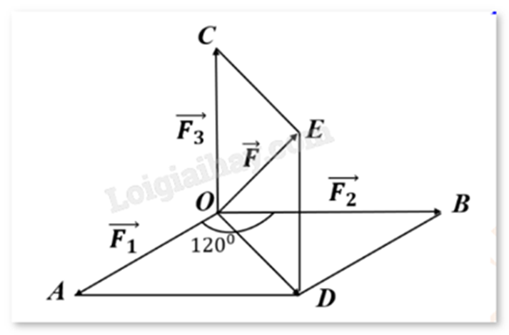 Vẽ \(\overrightarrow {OA} = \overrightarrow {{F_1}} \), \(\overrightarrow {OB} = \overrightarrow {{F_2}} \), \(\overrightarrow {OC} = \overrightarrow {{F_3}} \).