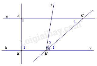 b) Vì a // b nên \(\widehat {{K_1}} = \widehat {aAK} = 90^\circ \) (hai góc so le trong).