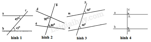 Hình 4 có hai góc đồng vị bằng nhau (= 900) nên hình 4 có hai đường thẳng song song.