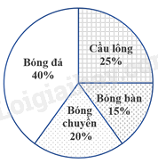 Biểu đồ hình quạt tròn ở hình bên biểu diễn kết quả thống kê (tính theo tỉ số phần trăm) chọn môn thể thao ưa thích nhất trong bốn môn: Bóng đá, Cầu lông, Bóng bàn, Bóng chuyền của học sinh khối 7 ở trường A. Mỗi học sinh chỉ được chọn một môn thể thao khi được hỏi ý kiến. Hỏi số học sinh chọn môn Bóng đá và Cầu lông.