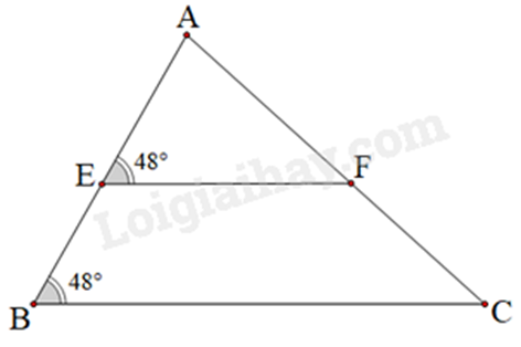 Ta có : \(\widehat {AEF} = \widehat {ABC} = {48^0}\) Mà hai góc này ở vị trí đồng vị \( \Rightarrow \) BC // EF.