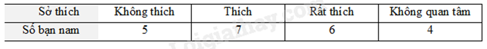 - Dữ liệu định tính là: sở thích (không thích, thích, rất thích, không quan tâm)