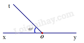 Ta có góc xOt và góc tOy là hai góc kề bù nên \(\widehat {xOt} + \widehat {tOy} = {180^0}\). Suy ra \(\widehat {tOy} = {180^0} - {60^0} = {120^0}\).