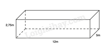 Một bể bơi dạng hình hộp chữ nhật có chiều dài 12m, chiều rộng 5m và sâu 2,75m như hình vẽ.