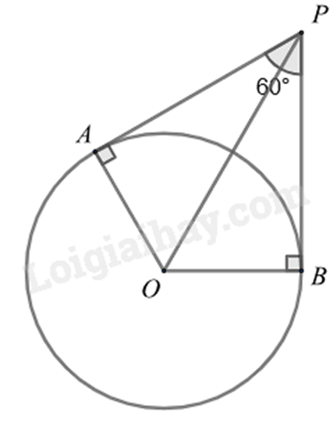 Cho hai tiếp tuyến PA và PB của đường tròn (O) (A, B là hai tiếp điểm). Biết \(\widehat {APB} = 60^\circ \), khi đó \(\widehat {APO}\) bằng