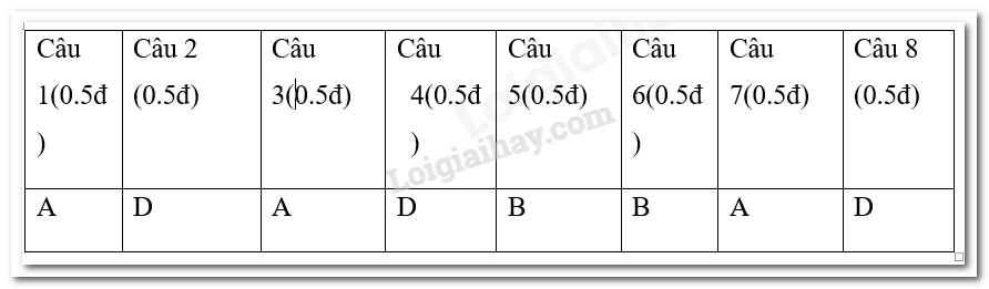 Hãy chọn đáp án đúng những câu sau đây: