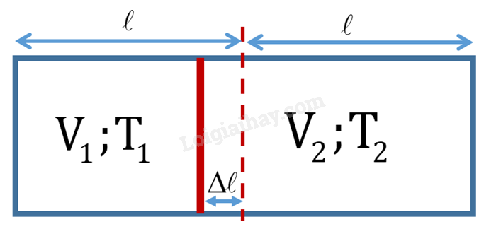 Vậy phải đun nóng khí ở một bên lên thêm ΔT độ: \({\rm{\Delta }}T = {T_2} - {T_1} = \frac{{l + {\rm{\Delta }}l}}{{l - {\rm{\Delta }}l}}{T_1} - {T_1} = \frac{{2{\rm{\Delta }}l}}{{l - {\rm{\Delta }}l}}{T_1} = \frac{{2.0,02}}{{0,3 - 0,02}}.290 = 41,4{\mkern 1mu} K\)