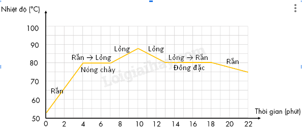 b) "Thời gian nóng chảy của chất rắn là 4 phút." sai, vì chất rắn bắt đầu nóng chảy từ 4 phút đến 7 phút. Do vậy, chất rắn nóng chảy trong vòng 3 phút.