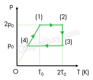 Quá trình biến đổi từ trạng thái (4) về trạng thái (1) là quá trình đẳng tích do đường biểu diễn trong hệ (p,T) là đường thẳng đi qua gốc toạ độ.