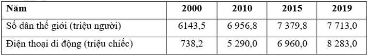 Số dân và số điện thoại di động thế giới giai đoạn 2000 – 2019