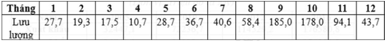 Căn cứ vào bảng số liệu trên, tính lưu lượng dòng chảy trung bình năm tại trạm Yên Thượng trên sông Cả.