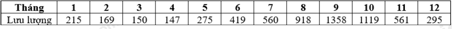 Căn cứ vào bảng số liệu trên, tính lưu lượng dòng chảy trung bình năm tại trạm Đồng Tâm trên sông Gianh (làm tròn kết quả đến hàng đơn vị của m3/s)