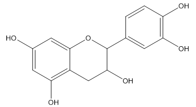 Catechin là một chất kháng oxi hóa mạnh, ức chế hoạt động của các gốc tự do nên khả năng phòng chống bệnh ung thư, nhồi máu cơ tim. Trong lá chè tươi, catechin chiếm khoảng 25 – 35% tổng trọng lượng khô. Ngoài ra, catechin còn có trong táo, lê, nho,…Công thức cấu tạo của catechin cho như hình bên: