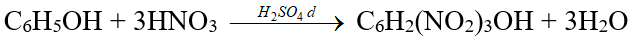 Picric acid (2,4,6 - trinitrophenol) trước đây được sử dụng làm thuốc nổ. Để tổng hợp picric acid, người ta cho 14,1 g phenol phản ứng với hỗn hợp HNO3 đặc/H2SO4 đặc, dư. Tính khối lượng picric acid thu được, biết hiệu suất phản ứng là 60%.