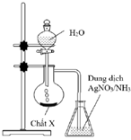 Thực hiện thí nghiệm như hình vẽ bên. Kết thúc thí nghiệm, trong bình đựng dung dịch AgNO3 trong NH3 xuất hiện kết tủa màu vàng nhạt.
