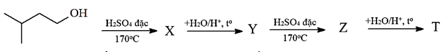 Biết rằng Y, Z là các sản phẩm chính của phản ứng. Chất X và T tương ứng là