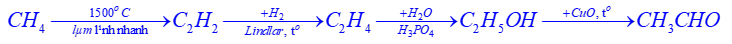 Acetylene (C≡C), ethanal (CH3CHO) có thể dùng thuốc thử AgNO3/NH3 vì acetylene tạo kết tủa màu vàng trong khi đó ethanol tạo kết tủa trắng.