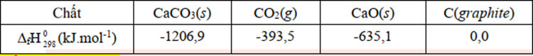 \(\begin{array}{l}{\Delta _r}H_{298}^o(1) = {\Delta _f}H_{298}^o(C{O_2}) + {\Delta _f}H_{298}^o(CaO) - {\Delta _f}H_{298}^o(CaC{O_3})\\ = ( - 393,5) + ( - 635,1) - ( - 1206,9) = 178,3kJ\end{array}\)