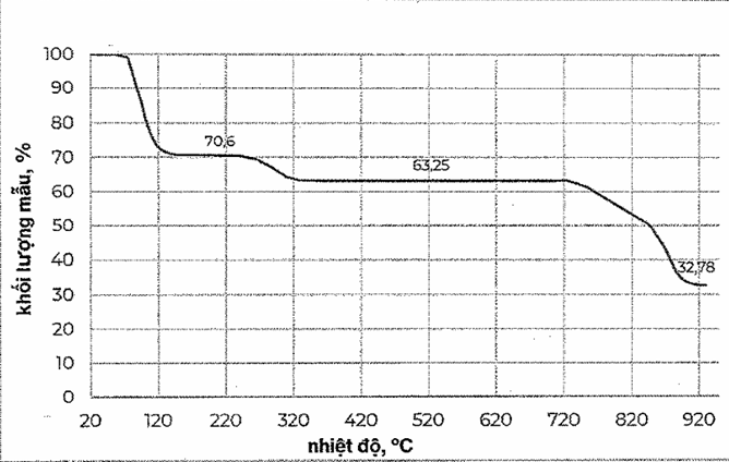 Tại 220oC, có 70,6% mẫu => %m H2O bị tách ra = 100 – 70,6 = 29,4%