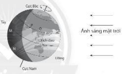 a. Ở các vị trí P, Q đang là ban ngày vì các vị trí này đang được Mặt Trời chiếu sáng. Ở các vị trí M và N đang là ban đêm vì các vị trí này lúc đó không được Mặt Trời chiếu sáng.