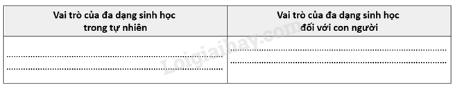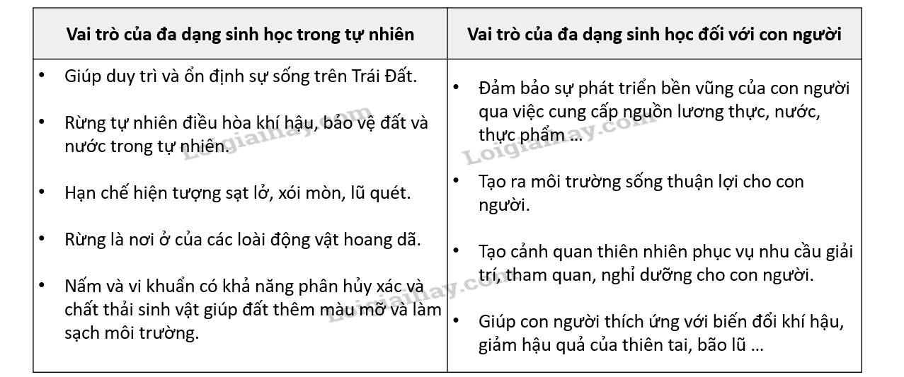 Hoàn thành bảng sau về vai trò của đa dạng sinh học.