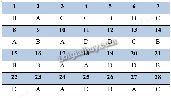 Đáp án và lời giải chi tiết