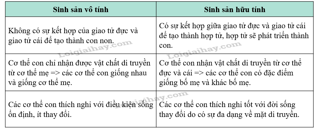 | Phân biệt sinh sản vô tính và sinh sản hữu tính ở sinh vật. |