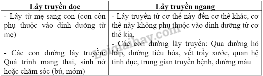 | Phân biệt phương thúc lây truyền ngang và lây truyền dọc của virus trên người và động vật. |